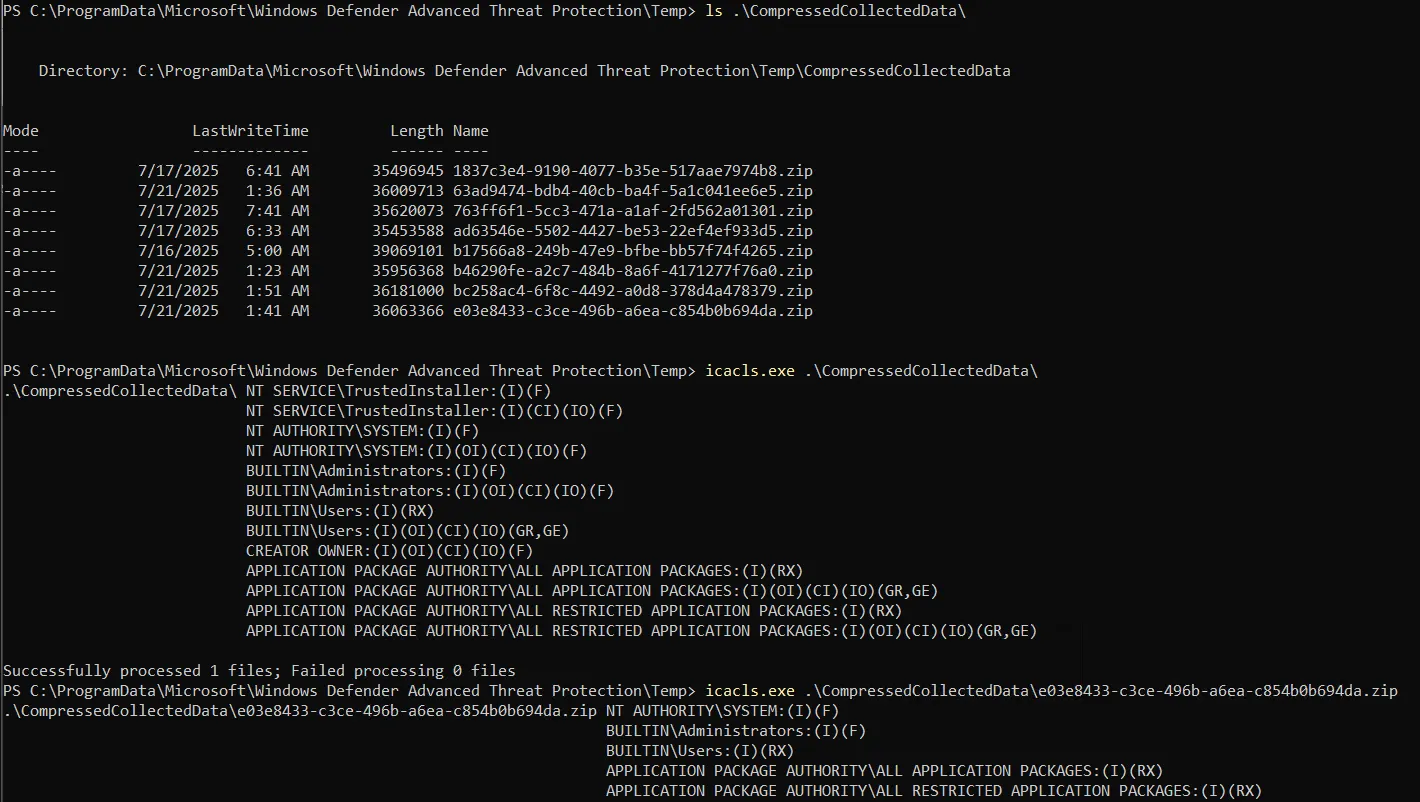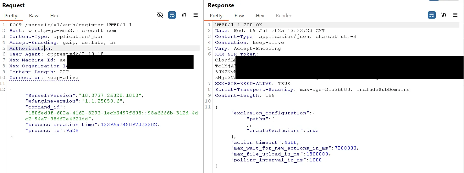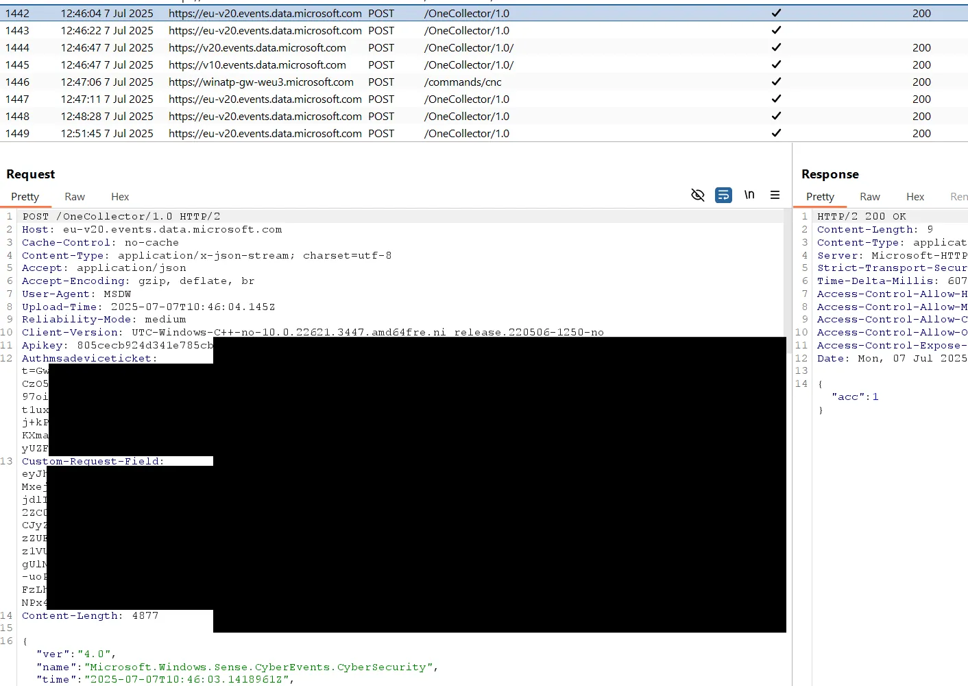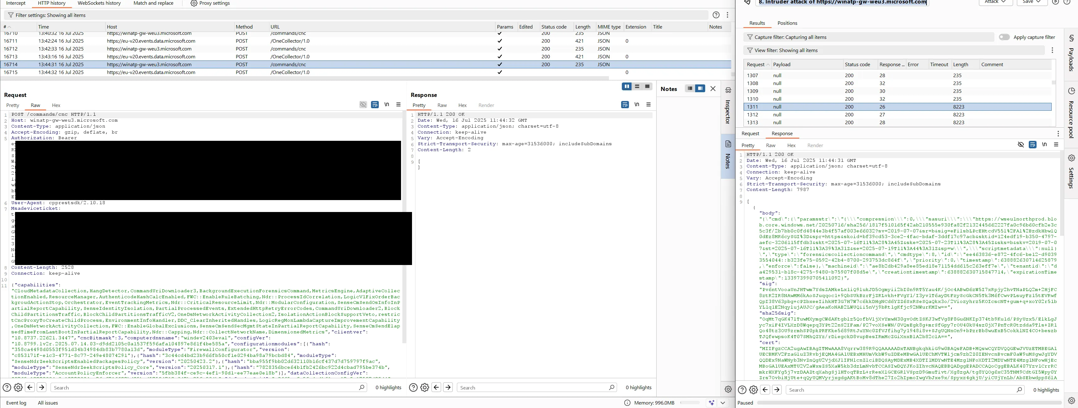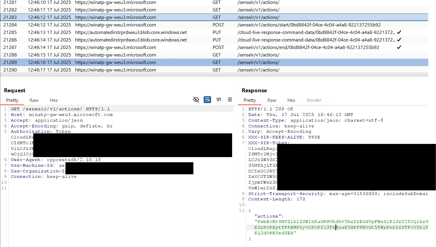 The serialization format is annoying, so the easiest approach is to capture a legitimate response using a proxy and then modify it. As of October 10, 2025, I noticed that requests to https://winatp-gw-weu3.microsoft.com/commands/cnc are being throttled by the server. This was not the case in July.
